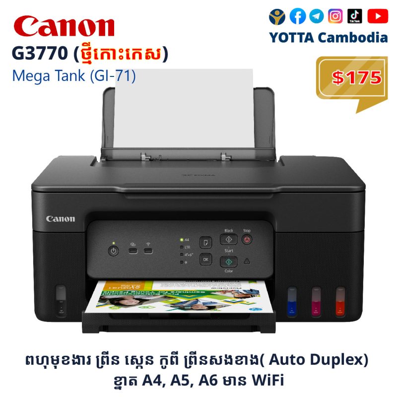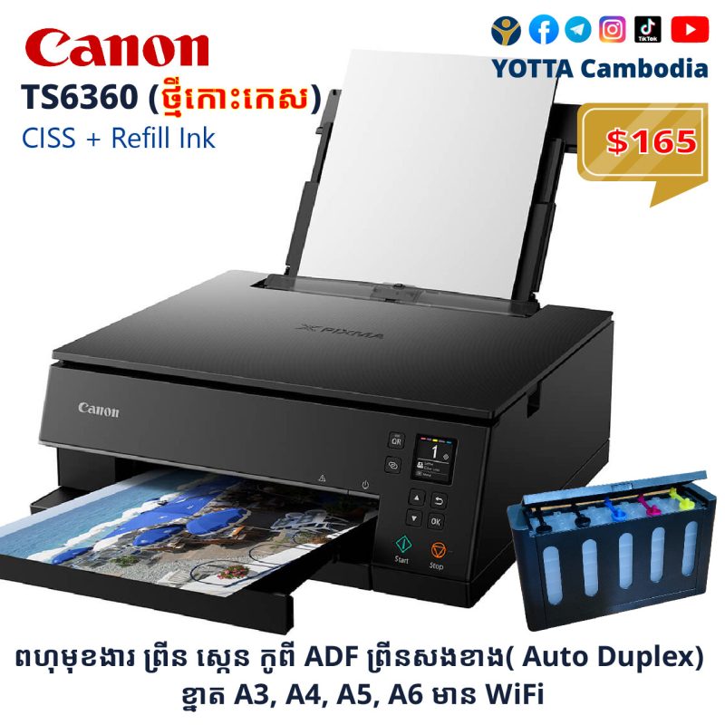 ជំនួយការឆ្លាតវៃសម្រាប់រាល់ការងារឯកសារ! 📄✨ ឈប់បារម្ភរឿងព្រីនយឺត ឬរូបភាពមិនច្បាស់ទៀតទៅ! ជាមួយម៉ាស៊ីនព្រីន Canon ស៊េរីថ្មី នឹងធ្វើឱ្យការងារការិយាល័យរបស់អ្នកកាន់តែងាយស្រួល និងចំណេញពេលវេលាជាងមុន៖